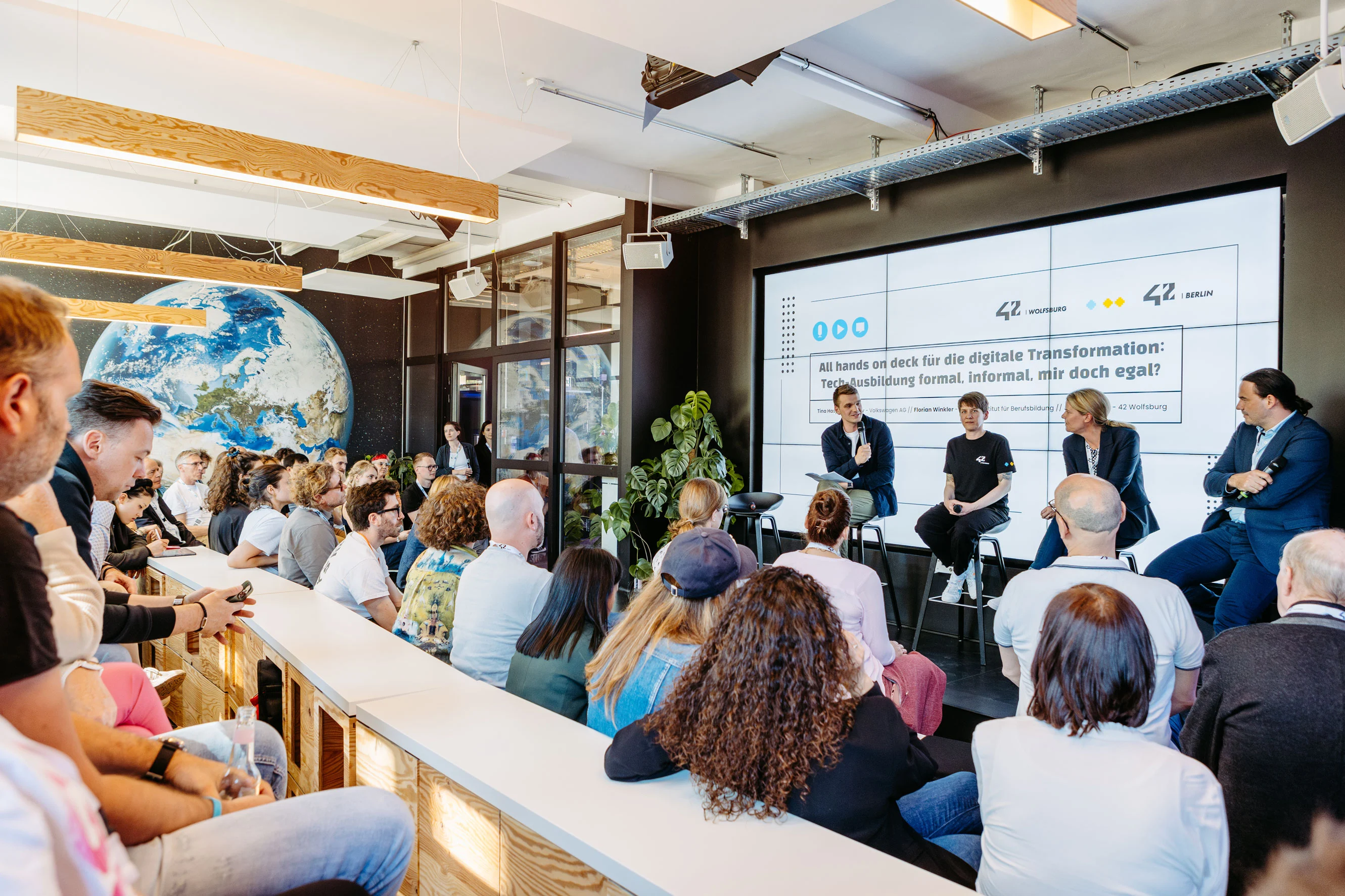 On May 13, 2024, the 42 Tech Education Summit took place at the Berlin campus of the non-profit Coding School. The goal of the event was to address the shortage of skilled workers in the German IT industry. On stage, discussions also revolved around the future of the German IT landscape, the question of diversity in the tech industry, and the impact of artificial intelligence on software development. After the summit, students from the school were able to connect with leaders from the industry at a Career Fair. We were able to support in terms of production, technology, food & beverages, interior, and personnel. A big thank you to the entire 42 team for the great event.